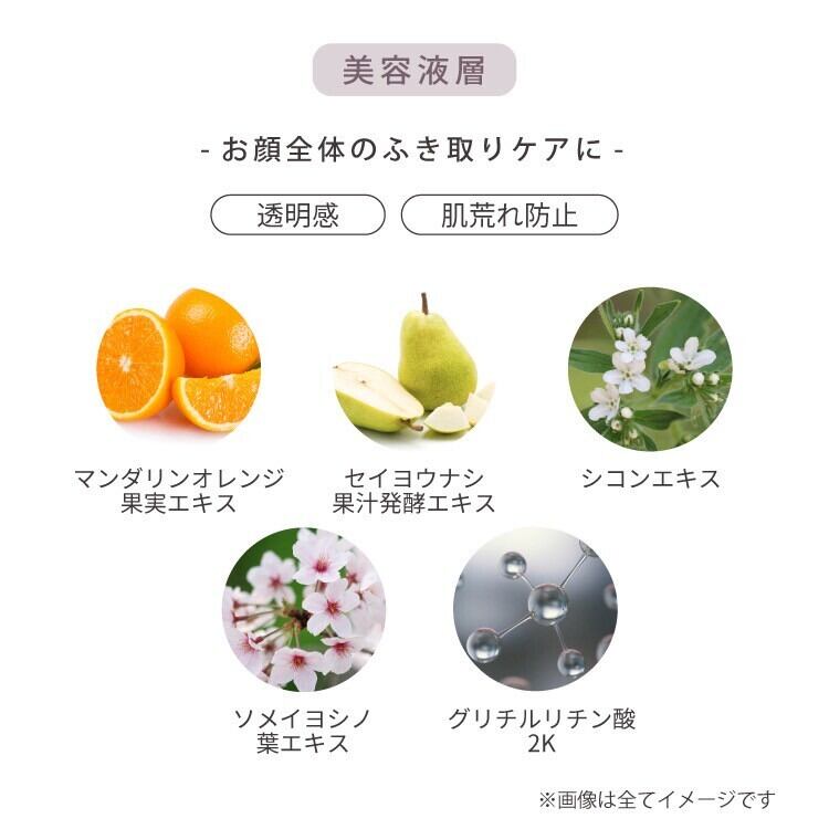 クレンジングの前に、500円玉大をコットンにのせてゆっくりと、包み込むようにメイクを落とします。※よく振ってからご使用ください。